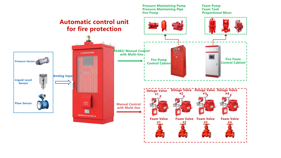 The automatic control system for fire protection is a new generation of networked fire control system, which is designed specifically for the control of fire equipment in industrial scenarios. It could be used to control fire pumps, foam pumps, and dry powder fire extinguishing systems. The product complies with GB 16806-2006 Automatic control system for fire protection.