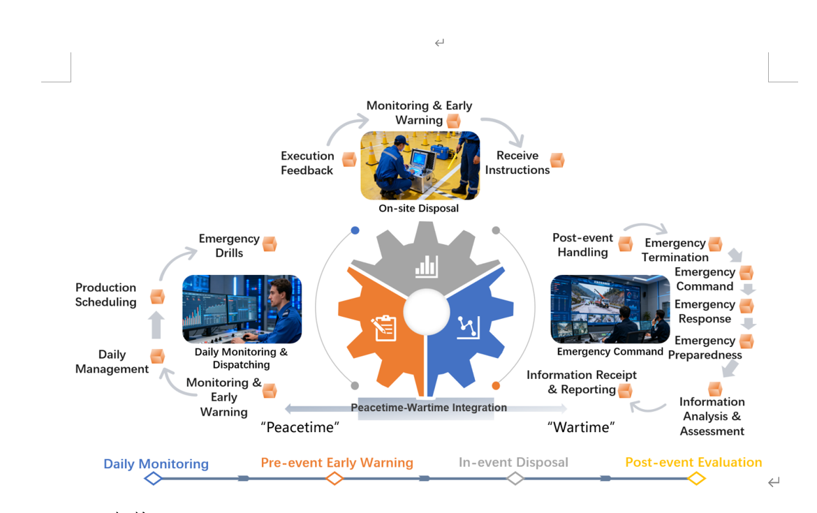 Based on the Gelite G-SES® Cloud Platform and the concept of "peacetime-wartime integration", this solution leverages ICT (Information and Communication Technology) such as the Internet of Things (IoT), big data, artificial intelligence (AI), and converged communications. It integrates the integrated monitoring and early warning system, integrated safety system, integrated environmental protection system, multi-source data acquisition gateway, GIS (Geographic Information System) service system, and integrated emergency command system. Real-time dynamics of safety, environmental protection, production, quality, operations, and equipment across the entire plant are visualized on a map-based interface. Dynamic monitoring is driven by real-time online data collection, and intelligent early warning is achieved through the construction of multi-dimensional big data anomaly analysis models for safety, environmental protection, production, and quality. This enables multi-dimensional visualized and intelligent applications covering monitoring, early warning, analysis, disposal, and emergency command. By unifying the "peacetime-wartime integration" platform for daily safety production management and emergency disposal of alarm events, the solution achieves the goal of "detecting problems at the first time and addressing them promptly". It realizes the transformation from passive response to alarm events to proactive intelligent monitoring, early warning, and disposal, facilitating the safe, stable, and efficient production as well as the sustainable development of enterprises.